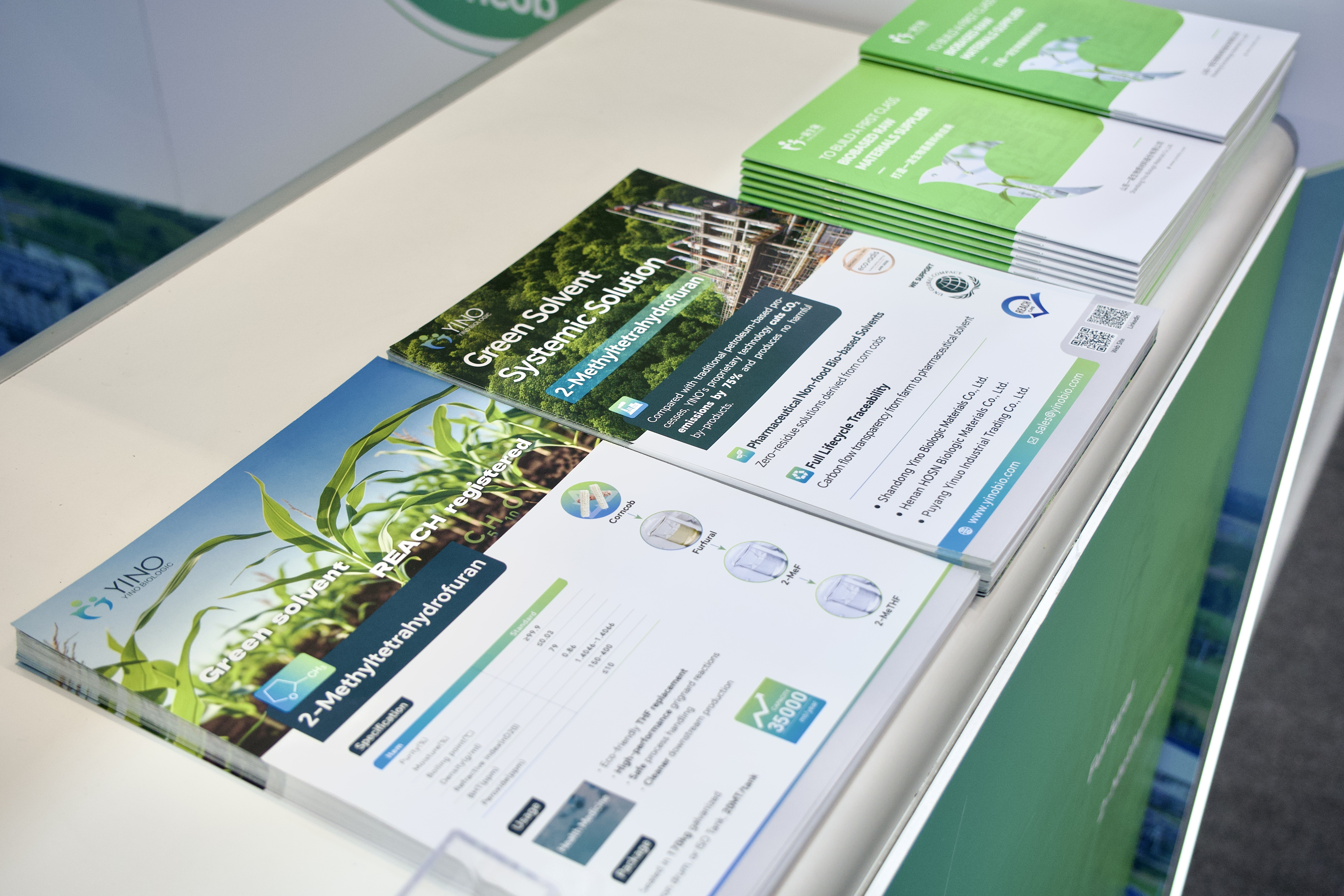 在制藥生產(chǎn)中,溶劑與原料的選擇不僅關(guān)系到工藝的安全性與環(huán)境友好性,更直接影響藥物純度和生產(chǎn)效率。YINO Biologic 以非糧生物質(zhì)玉米芯為原料,從源頭實(shí)現(xiàn)碳減排與資源高效利用,構(gòu)建了覆蓋從原料到終端制造的綠色供應(yīng)鏈。本次展會(huì)上,公司重點(diǎn)展示了多款高性能可持續(xù)產(chǎn)品,包括可作為活性藥物成分(API)合成綠色溶劑的 2-Methyltetrahydrofuran(2-MeTHF),該產(chǎn)品可有效替代傳統(tǒng) THF,顯著降低揮發(fā)性有機(jī)物排放并提升反應(yīng)安全性與效率;用于高端藥物保護(hù)基及精細(xì)化工中間體合成的關(guān)鍵原料 3,4-Dihydro-2H-Pyran(DHP);以及新一代高純度環(huán)狀酯原料 δ-Valerolactone(δ-VL),廣泛應(yīng)用于藥物輔料及聚合物開(kāi)發(fā)領(lǐng)域,充分展現(xiàn)了 YINO 在綠色化學(xué)與可持續(xù)材料創(chuàng)新方面的實(shí)力。